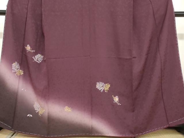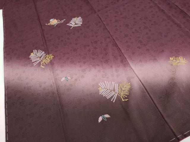 Heiwa-ya Kimono: Fully embroidered formal kimono with a ceramic pine needle pattern, gradation dyeing, and gold thread. Made of pure silk by Suzunoya. Excellent condition. Unused. DAAY5334ud