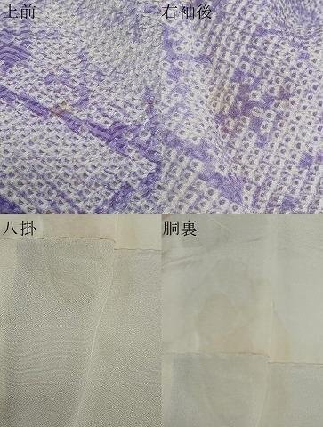 状態は接写画像のように上前・右袖後・八掛・胴裏に薄い汚れがございますが