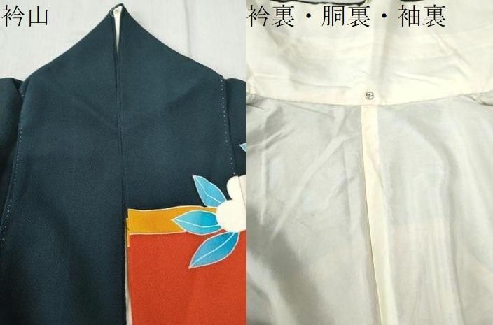 状態は接写画像のように衿山・衿裏・胴裏・袖裏に薄い汚れがございますが