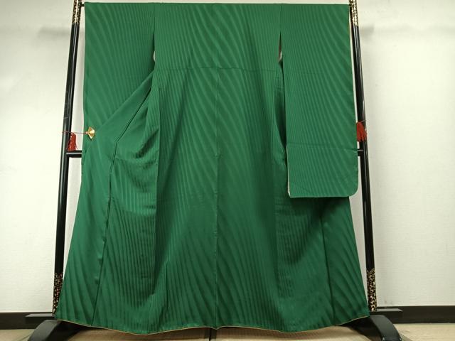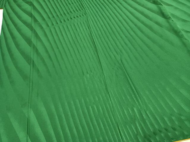 Heiwa-ya Kimono: Gorgeous Long-Sleeved Kimono with a Variegated Striped Pattern, Light Green, Pure Silk, Excellent Condition, AABE5496fy