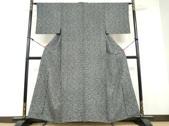 Heiwa-ya Kimono: High-quality komon kimono with pine cone motifs, black background, pure silk, exquisite item, DABB0080ud