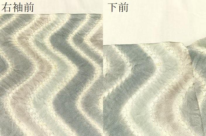 状態は接写画像のように右袖前・下前に薄い汚れがございますが