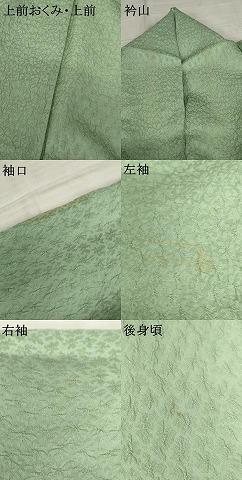 状態は接写画像のように上前・上前おくみ・衿山・右袖・後身頃に薄い汚れ、袖口・左袖に汚れがございますが