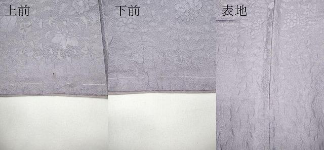 状態は接写画像のように表地所々にヤケ、上前・下前に薄い汚れがございます。