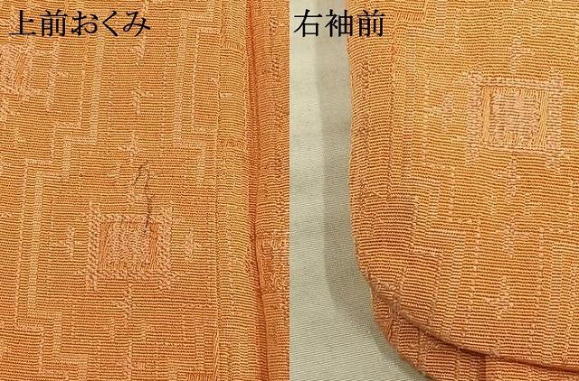 状態は接写画像のように上前おくみ・右袖前に薄い汚れがございますが