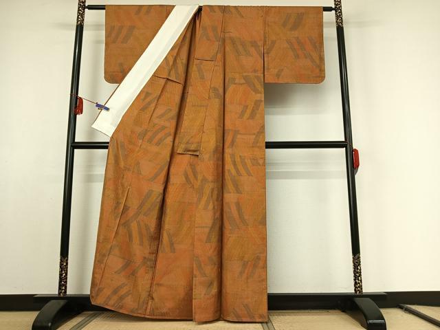 Heiwa-ya Kimono: High-quality Tsumugi Kimono, Single-Layer, Geometric Pattern, Pure Silk, Excellent Item, AABE8354jh