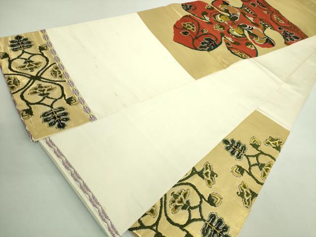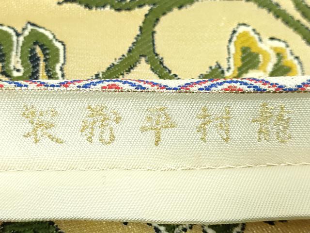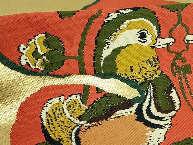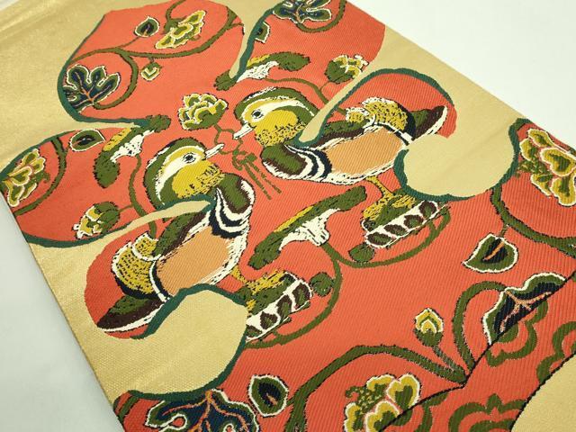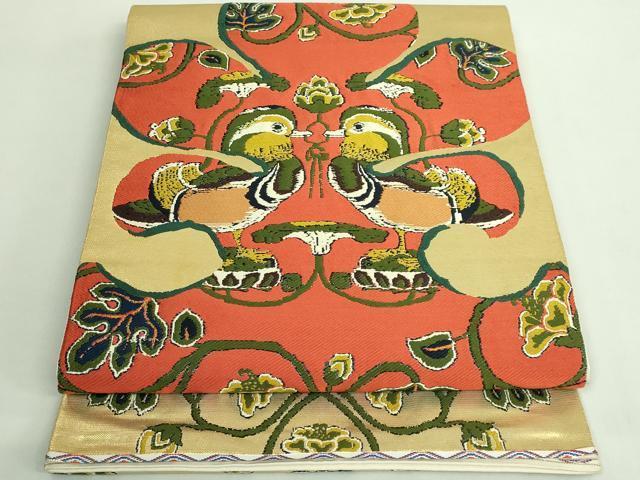 Heiwa-ya Kimono: Highest quality, Tatsumura Heizo-made Taiko pattern genuine obi with mandarin duck arabesque design and gold thread. Excellent quality. DZAB2004kh6