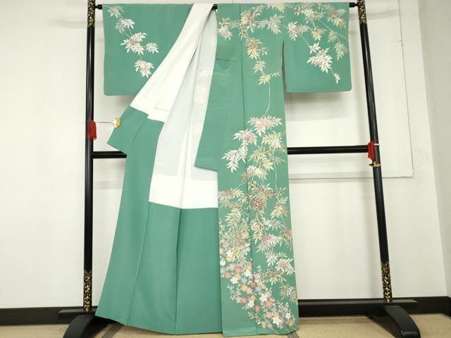 加賀友禅は落ち着きのある写実的な草花模様を中心とした絵画調の柄であるのに対し、