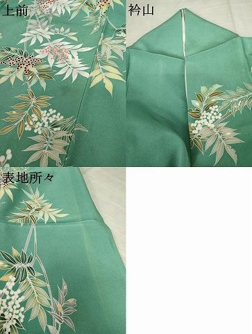 状態は接写画像のように上前に薄いシミ、衿山に薄い汚れ、表地所々ヤケがございますが