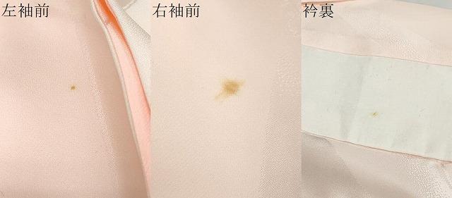 状態は接写画像のように左袖前・右袖前・衿裏に薄い汚れがございますが
