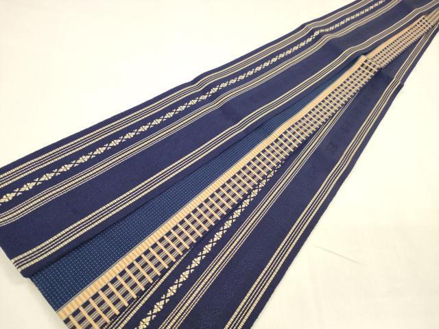 Heiwa-ya Kimono: Men's Authentic Chikuzen Hakata-ori Double-Sided Square Obi with Plaid Pattern, Pure Silk, Excellent Quality, DABA0397cm