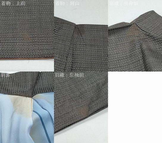 着物の状態は接写画像のように上前・肩山に薄い汚れがございますが