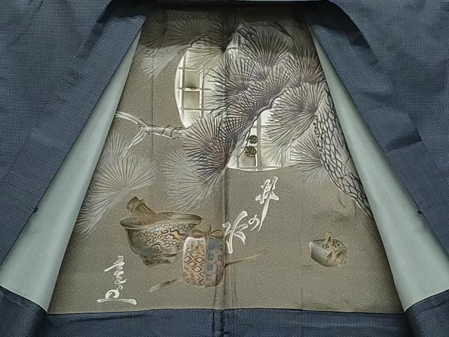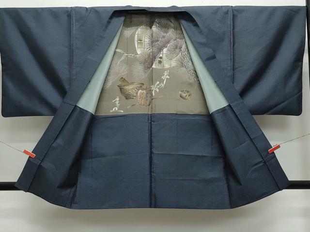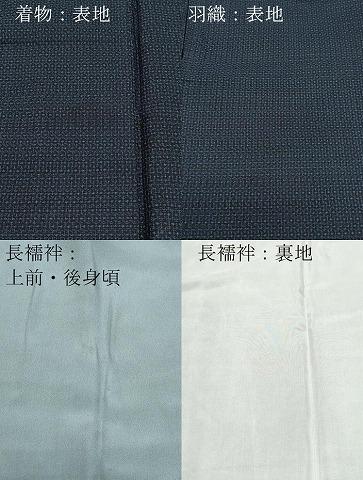 羽織の状態は接写画像のように上前・後身頃・裏地に汚れがございます。