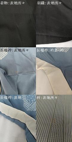 羽織の状態は接写画像のように表地所々に薄い汚れがございます。