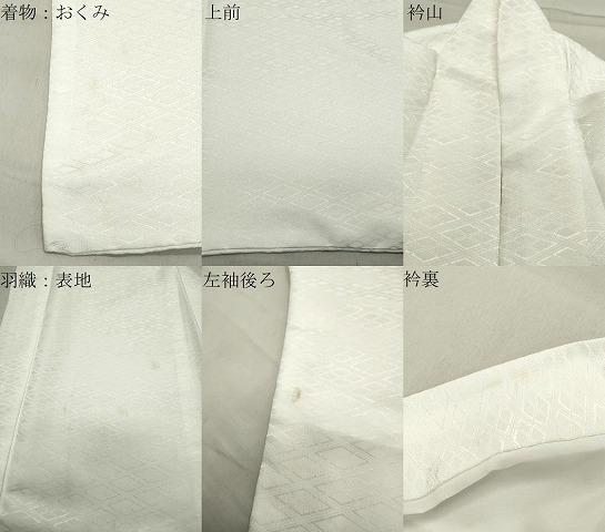 羽織の状態は接写画像のように表地所々・衿裏に薄い汚れ、左袖後ろに点穴がございます。