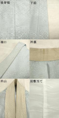 状態は接写画像のように後身頃・居敷当てに糸ヨレ、下前にシミ、袖口・衿裏・衿山に薄い汚れがございますが