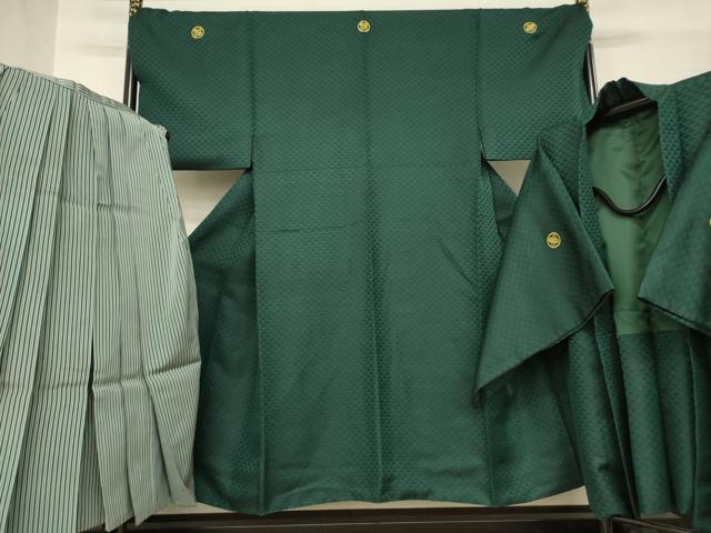 Heiwa-ya Kimono: Men's Set of Iro-montsuki (Colored Crest), Haori (Haori), and Lantern Hakama (Hakama) with Scale Pattern and Silver-Threaded Ground, AABB4438ck