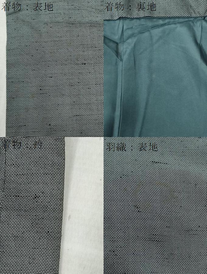 着物の状態は接写画像のように表地所々・裏地・衿に薄い汚れがございます。