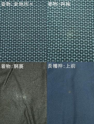 着物の状態は接写画像のように表地所々・両袖・胴裏に薄い汚れがございます。