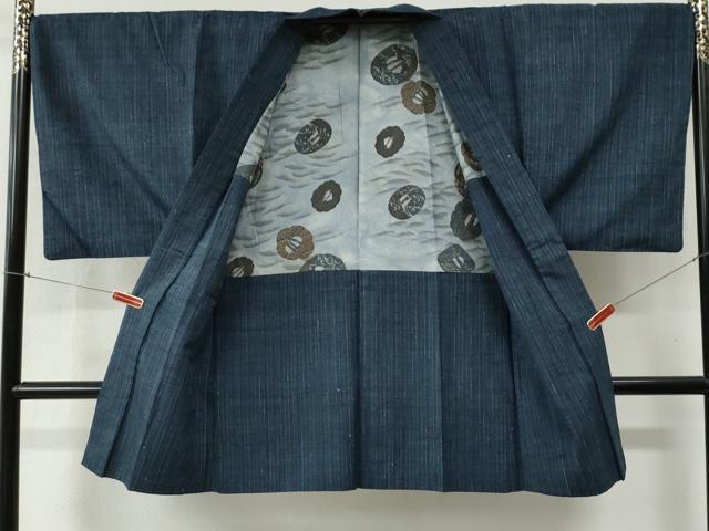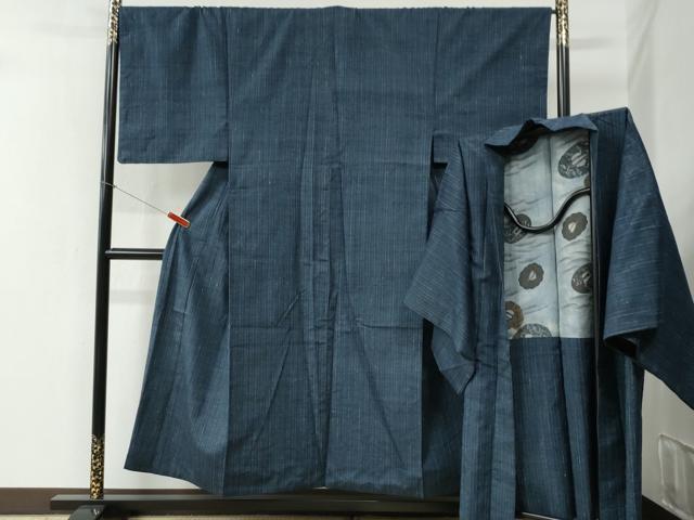 Heiwa-ya Kimono: Men's Tsumugi Ensemble, Striped, Pure Silk, Excellent Quality, CABB4667yc