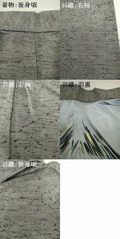 羽織の状態は接写画像のように右袖・右胸・羽裏・後身頃に薄い汚れがございますが