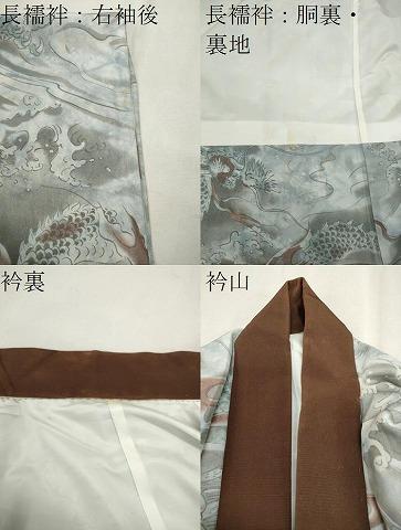 長襦袢の状態は接写画像のように右袖後に汚れ、胴裏・裏地・衿裏・衿山に