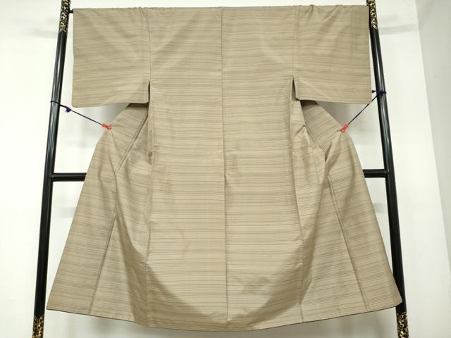 Heiwa-ya Kimono: Men's Tsumugi Kimono with Horizontal Stripes, Pure Silk, Excellent Condition, DAAY5427ud