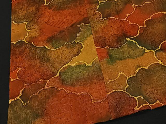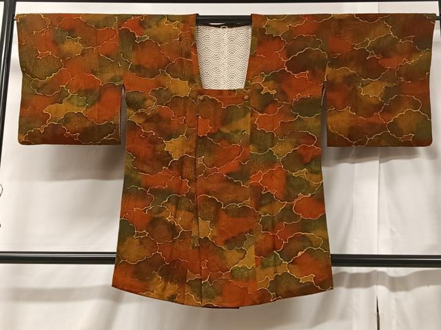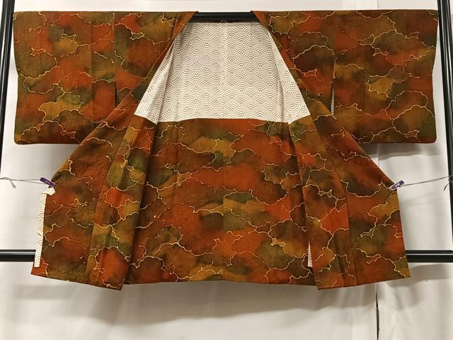 Heiwa-ya Kimono #Michiyuki Coat, Batik Dyed, Ground Pattern, Layered Cloud Pattern, Gradient Dyed, Pure Silk, Excellent Item, CABB5377ua