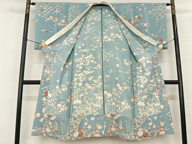 Heiwa-ya Kimono: Nagajuban (long under-kimono), single layer, floral pattern, oni-shibo crepe, pure silk, exquisite item, AABF0549fy