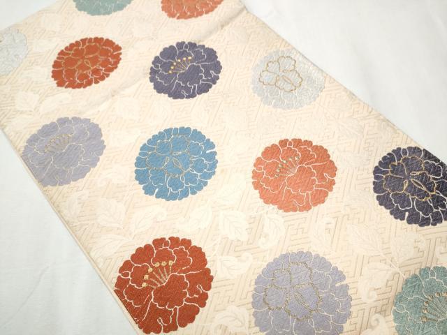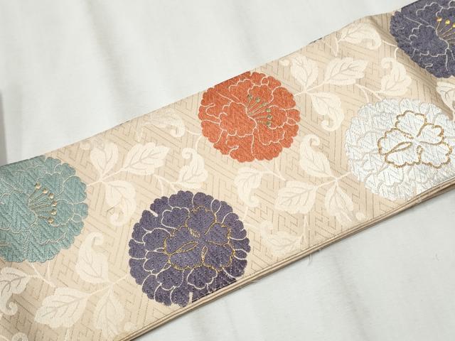 Heiwa-ya Kimono: Obi (sash) with Karaya brocade, floral design, genuine gold leaf, pure silk, exquisite item, CABA1120hy