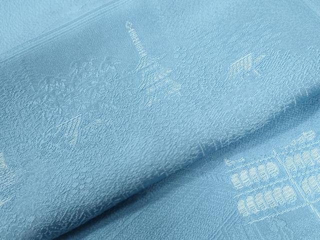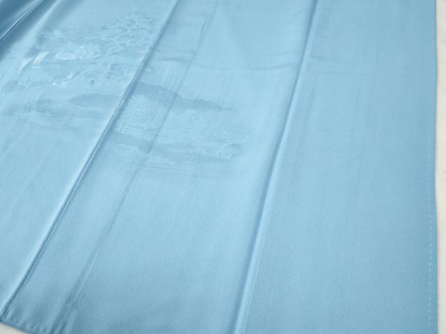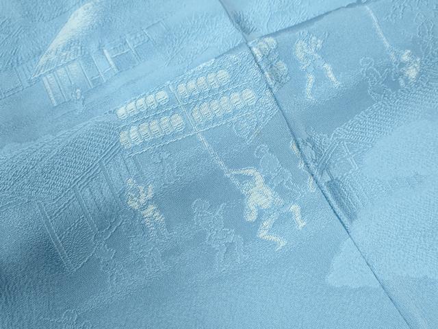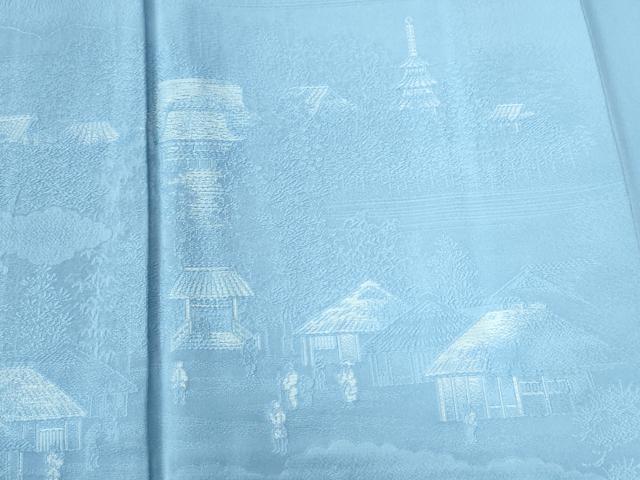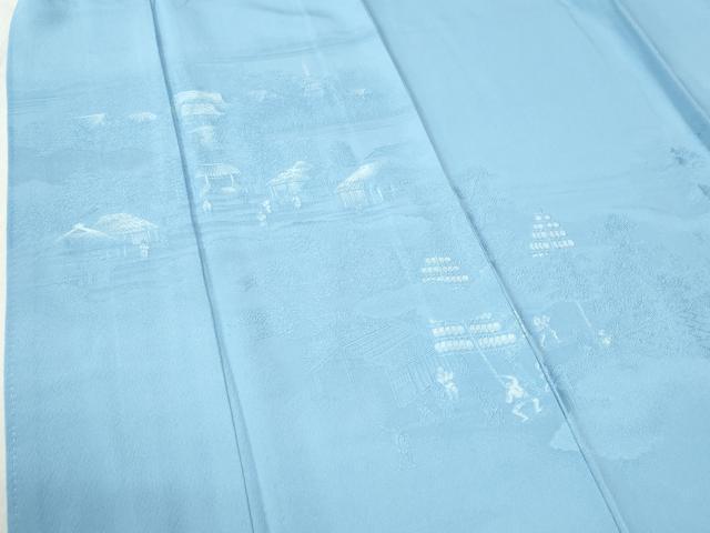 Heiwa-ya Kimono: Plain Eba Homongi (Visiting Kimono) with Cloud Pattern, Figures, and Kyoto Purple Landscape Design, Sky Blue, Pure Silk, Excellent Condition, Unused, CABB4327yc