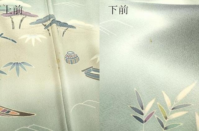 状態は接写画像のように上前・下前に薄い汚れがございますが