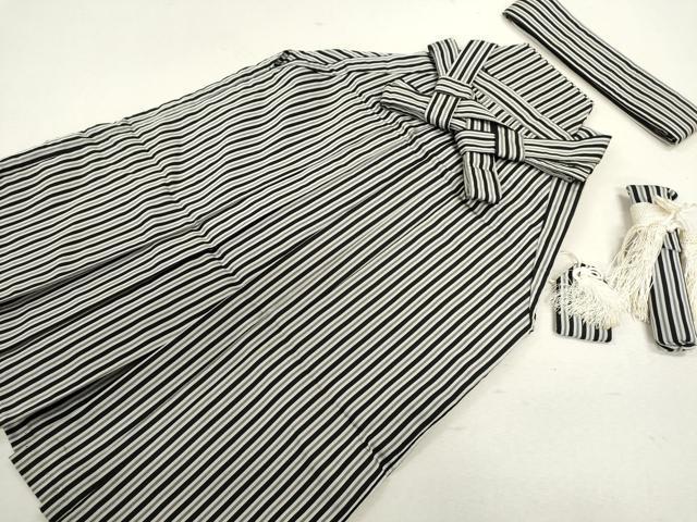 行灯袴【化繊】の状態は接写画像のように3のひだ・後ろひだ・2のひだに薄い汚れがございますが