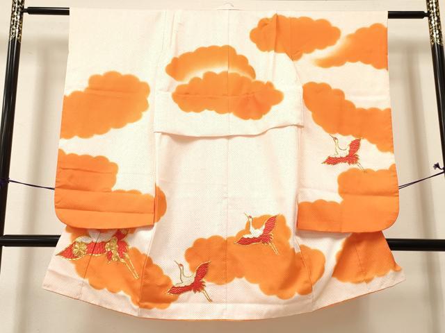 Heiwa-ya Kimono Shichi-Go-San, Girl's, 7-Year-Old, Celebration Kimono, Four-Piece Set, Koma Embroidery, Flying Crane and Cloud Design, Gradient Dye, Washable, DAAY3084ma
