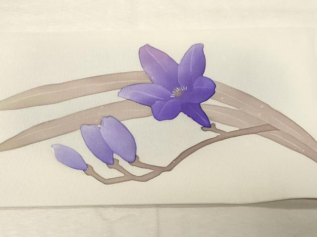 Heiwa-ya Kimono: Shiose 9-inch Nagoya Obi (Sash), Artist-Made, Hand-Painted, Wax-Resist Dyed, Floral Pattern, Pure Silk, Excellent Condition, Unused, CABA9198dy