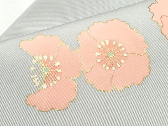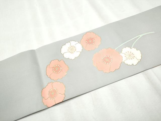 Heiwa-ya Kimono: Shiose 9-inch Nagoya Obi (Sash), Koma Embroidery, Branch and Flower Pattern, Gold Accents, Pure Silk, Excellent Quality, CABB9392hy