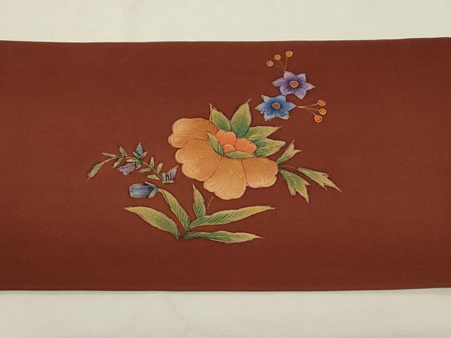 Heiwa-ya Kimono: Shiose 9-inch Nagoya Obi with Floral and Gold Design, Pure Silk, Excellent Quality, CABA2181dy