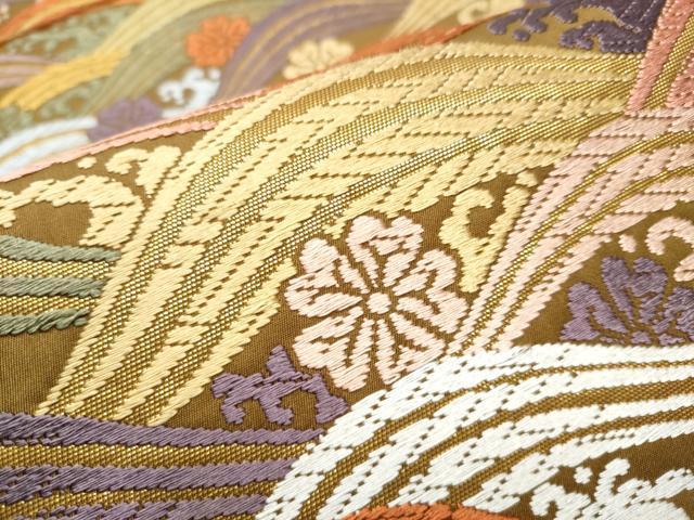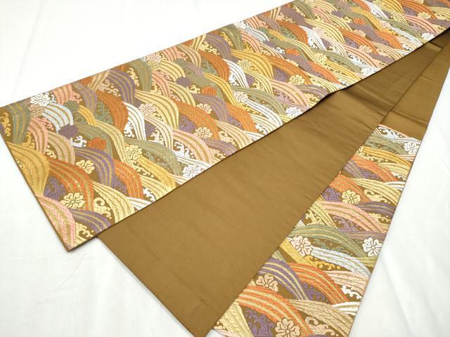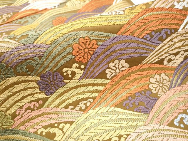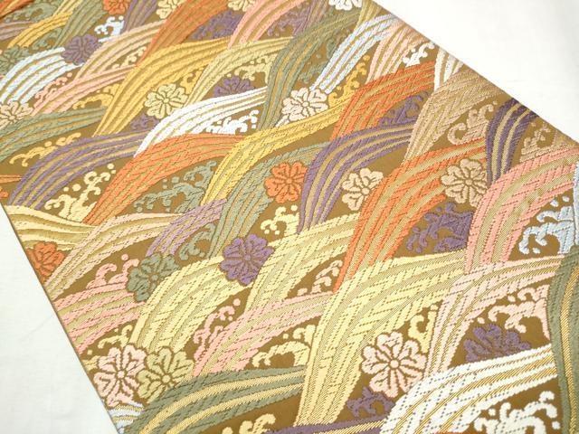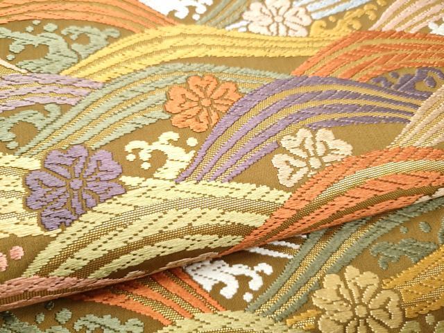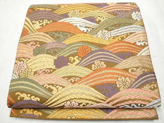 Heiwa-ya Kimono: Six-pass pattern obi, Karaori weave, flowing water and floral design, gold thread, pure silk, exquisite item, CABB9207hy