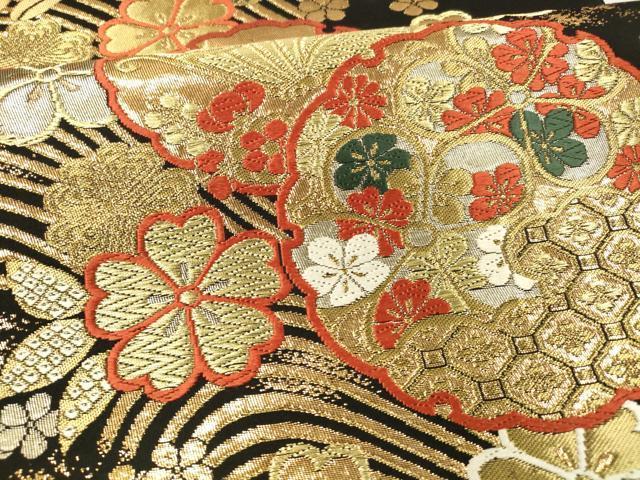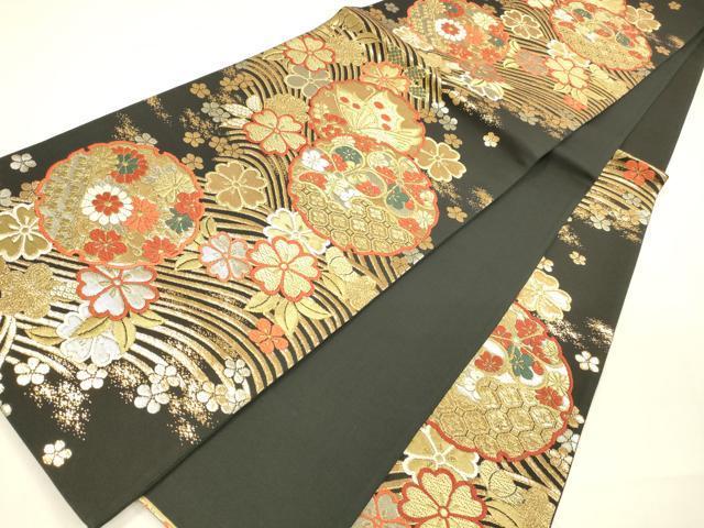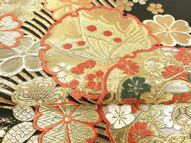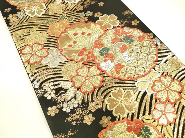 Heiwa-ya Kimono: Six-pass pattern obi, Karaori weave, snowflake, flower, and butterfly design, black background, gold and silver thread, pure silk, exquisite item, DAAZ4465cm