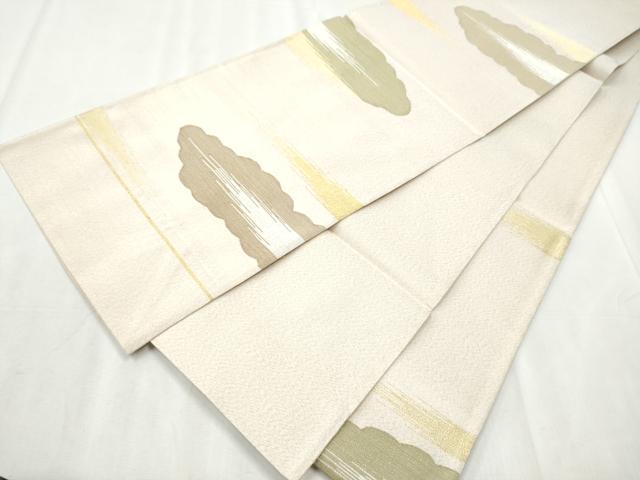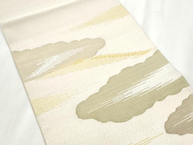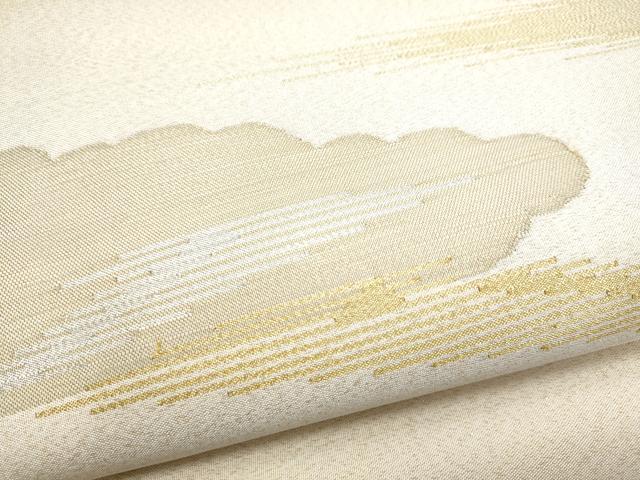Heiwa-ya Kimono: Six-pass pattern obi, Tsumuri (woven), Cloud and Haze design, Gold thread, Pure silk, Excellent condition, Unused, CABB9489hy