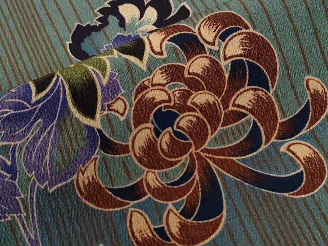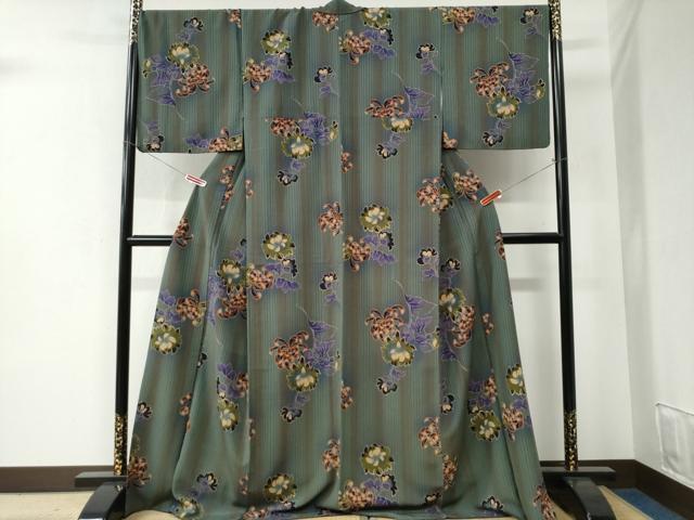 Heiwa-ya Kimono: Small-patterned, Rangiku (Chrysanthemum) Kimono, Sanbi-made, Long-length, Washable Kimono, CABB4594yc