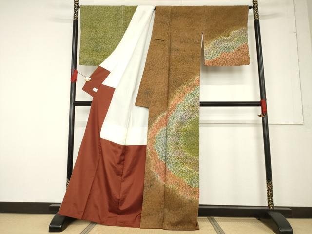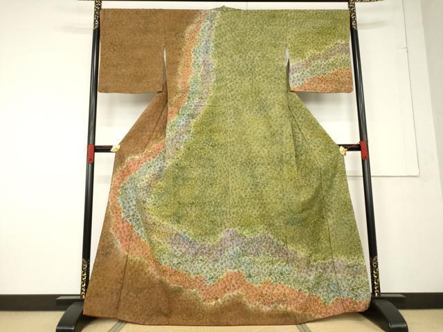 Heiwa-ya Kimono: Sugawara Studio, Yusaku Sugawara, herbal dyed tsumugi kimono, visiting kimono with Michinaga motif, pure silk, exquisite item, AABF2863ck
