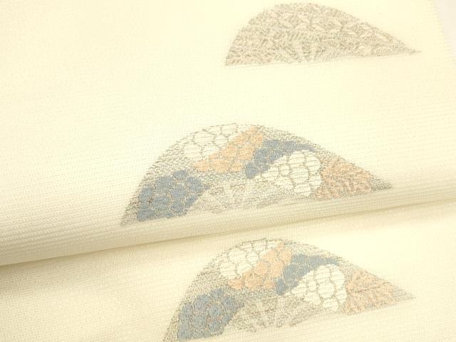 Heiwa-ya Kimono * Summer 9-inch Nagoya Obi, Karaori, Floral Design, Silver Thread, Pure Silk, Excellent Quality, DAAY8331cm