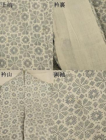状態は接写画像のように上前・衿裏・衿山・両袖に薄い汚れがございますが