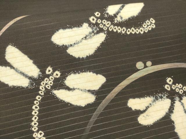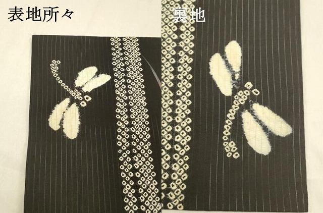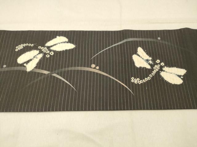 Heiwa-ya Kimono * Summer item, Silk Silk, 9-inch Nagoya Obi, Shibori, Dragonfly and Dewdrop Grass Design, Black, Pure Silk, Excellent Quality, DABA0942cm