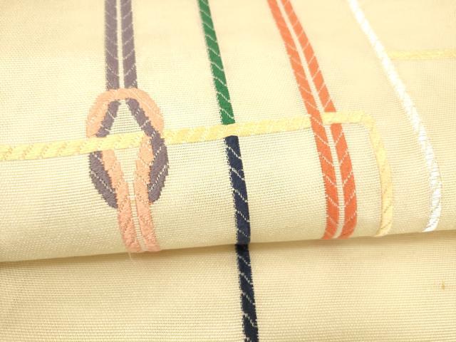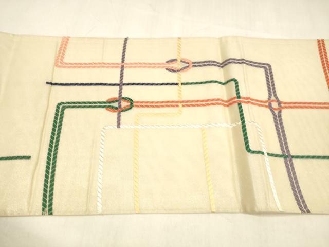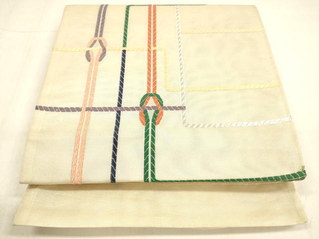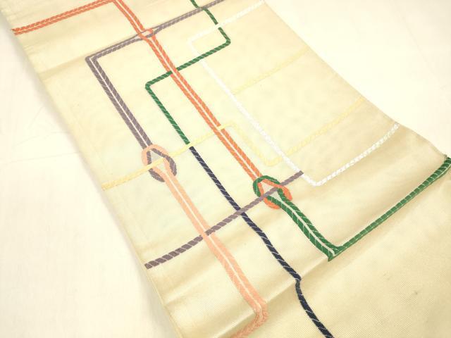 Heiwa-ya Kimono * Summer Nishijin Six-Piece Pattern Obi, Karaori, Abstract Pattern, Silver Thread, Certificate of Authenticity, Pure Silk, Excellent Quality, DABA0895cm
