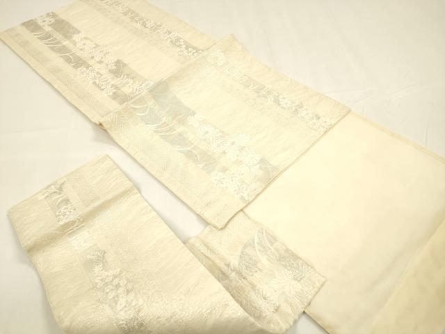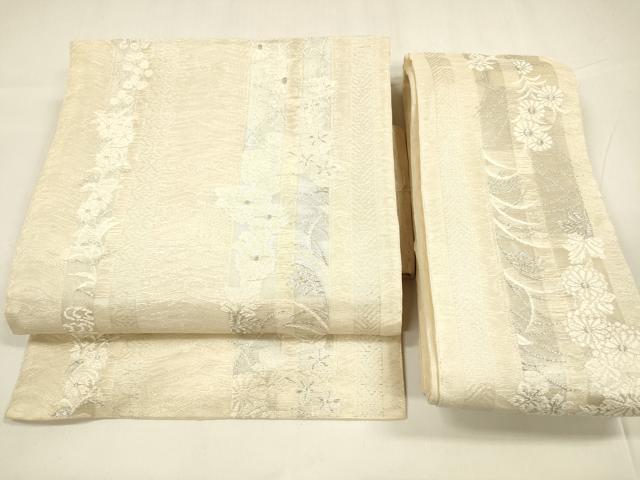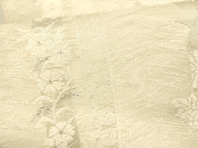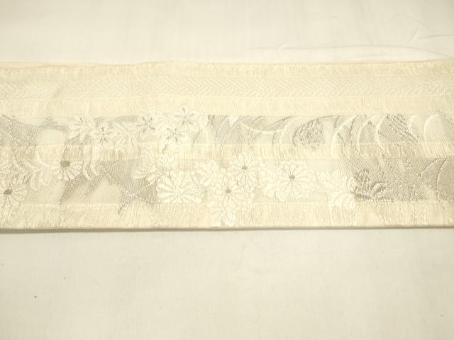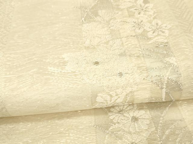 Heiwa-ya Kimono * Summer Obi (Sash) Karaori (Kusa Hana Mado) with Silver Thread, Pure Silk, Excellent Item, DABA0309cm