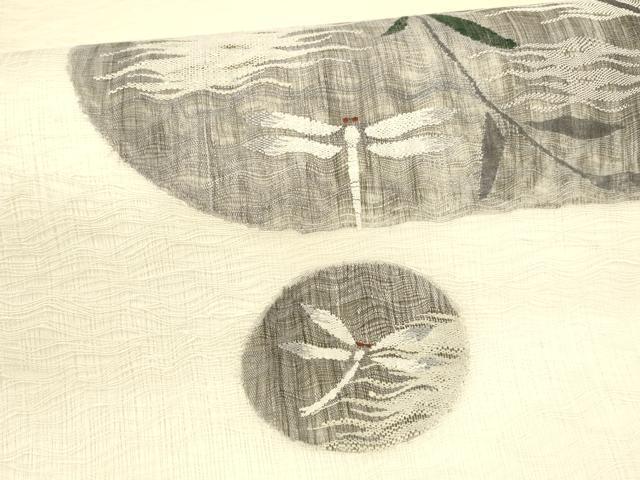 Heiwa-ya Kimono * Summer Obi (Sash) with a scoop weave, featuring dragonflies and grass leaf patterns, pure silk, exquisite item, DAAY8322cm