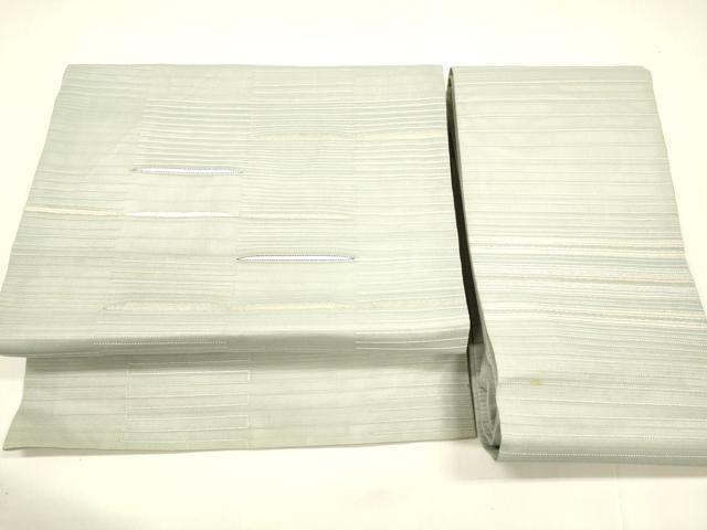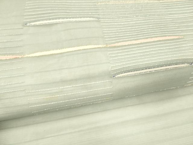 Heiwa-ya Kimono * Summer Obi with Horizontal Stripes, Silver Thread, Pure Silk, Excellent Quality, DABA03, 10cm