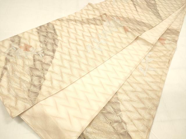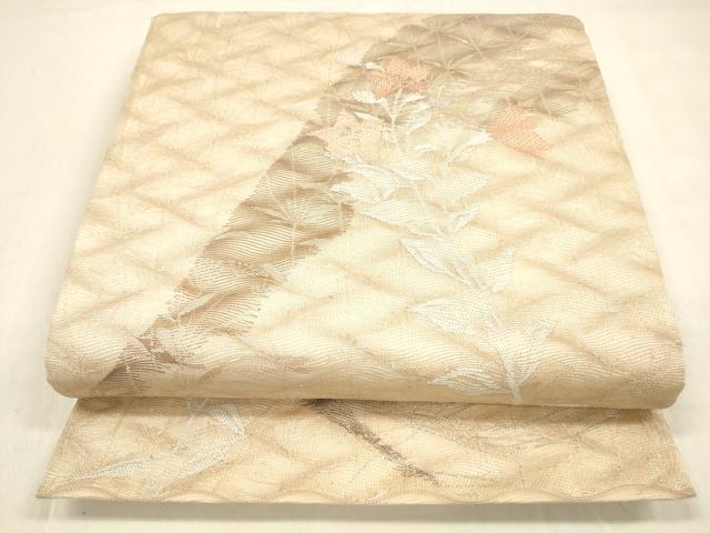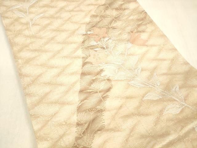 Heiwa-ya Kimono * Summer Six-Piece Pattern Obi with Floral Design, Gold Thread, Pure Silk, Excellent Item, DABA0887cm